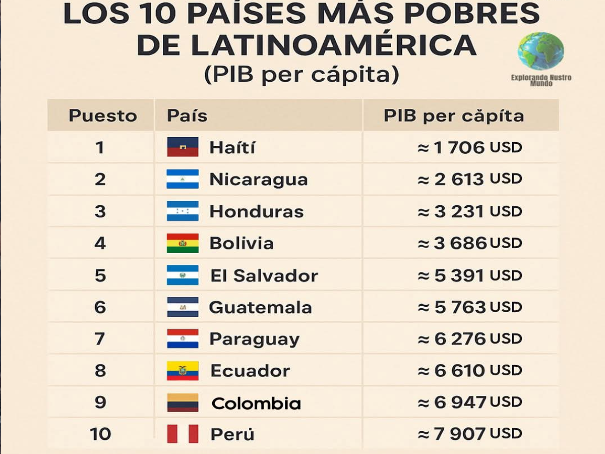 Un informe basado en datos del Banco Mundial y la Cepal, correspondientes a 2022 y 2024, sitúa a Haití como el país más pobre de América Latina. La clasificación...
